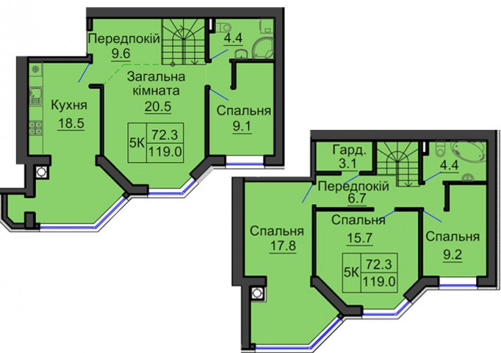 ДВОРІВНЕВА КВАРТИРА 119.00 М/КВ