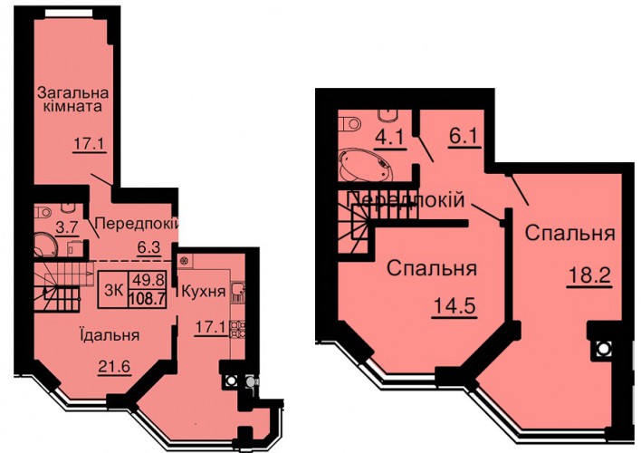 ДВОРІВНЕВА КВАРТИРА 108.70 М/КВ