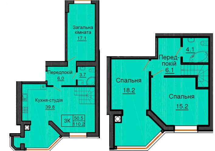 ДВОРІВНЕВА КВАРТИРА 110.20 М/КВ