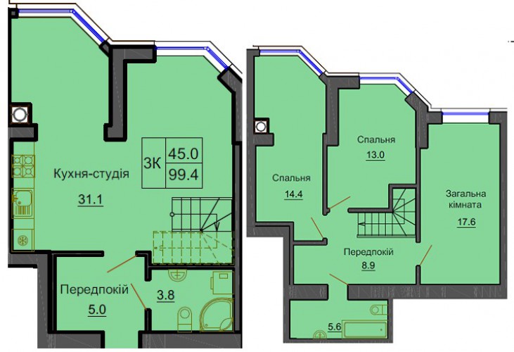ДВОРІВНЕВА КВАРТИРА 99.40 М/КВ