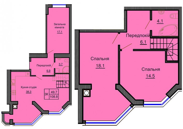 ДВОРІВНЕВА КВАРТИРА 108.80 М/КВ