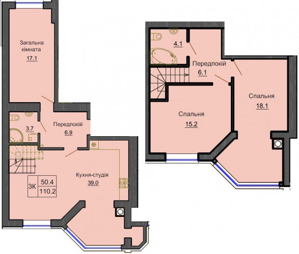 ДВОРІВНЕВА КВАРТИРА 110.20 М/КВ