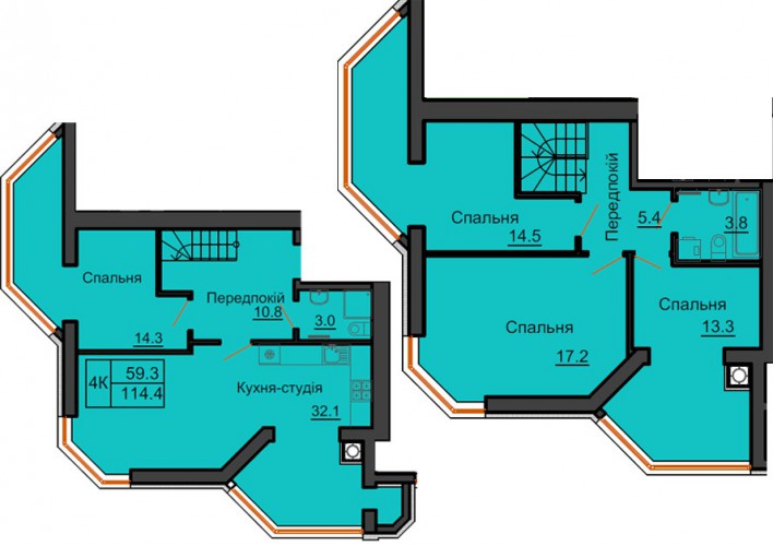 ДВОРІВНЕВА КВАРТИРА 114.40 М/КВ