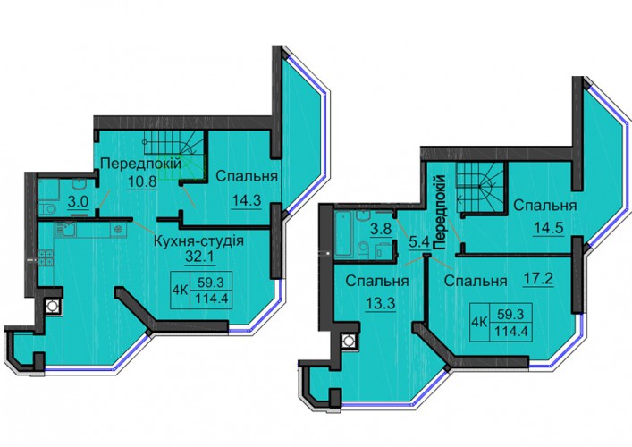 ДВОРІВНЕВА КВАРТИРА 114.40 М/КВ