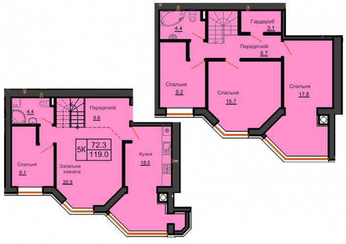 ДВОРІВНЕВА КВАРТИРА 119.00 М/КВ
