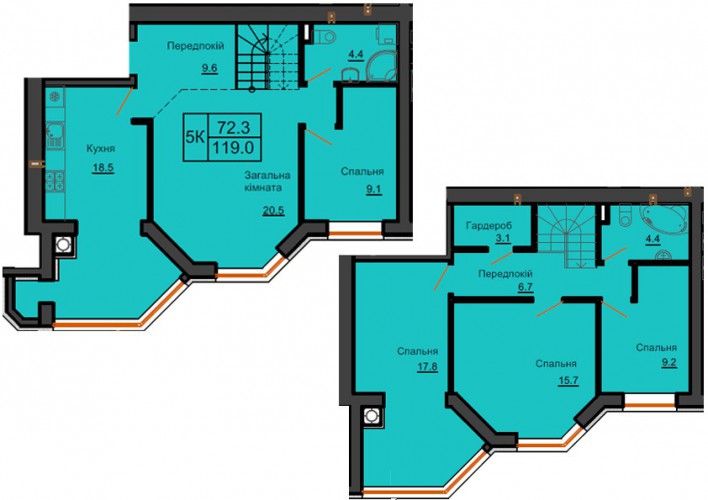 ДВОРІВНЕВА КВАРТИРА 119.00 М/КВ