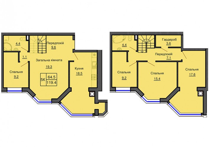 ДВОРІВНЕВА КВАРТИРА 119.40 М/КВ