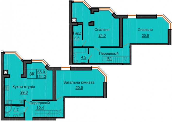 ДВОРІВНЕВА КВАРТИРА 124.20 М/КВ