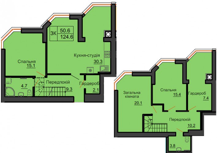 ДВОРІВНЕВА КВАРТИРА 124.60 М/КВ