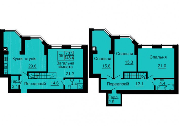 ДВОРІВНЕВА КВАРТИРА 143.40 М/КВ
