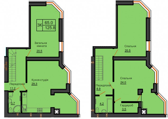 ДВОРІВНЕВА КВАРТИРА 125.80 М/КВ