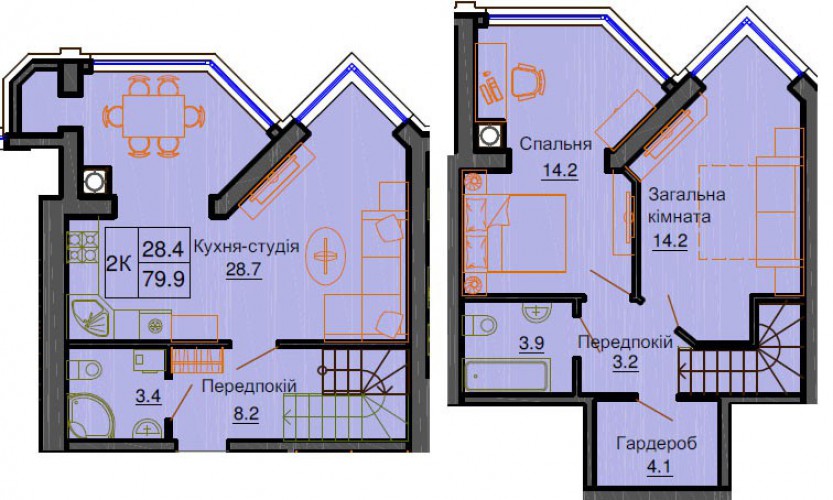 ДВОРІВНЕВА КВАРТИРА 79.90 М/КВ