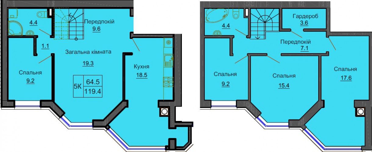 ДВОРІВНЕВА КВАРТИРА 119.40 М/КВ