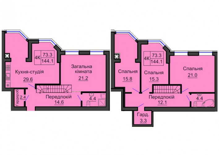 ДВОРІВНЕВА КВАРТИРА 144.10 М/КВ