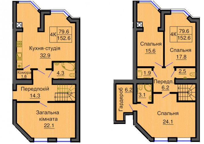 ДВОРІВНЕВА КВАРТИРА 152.60 М/КВ