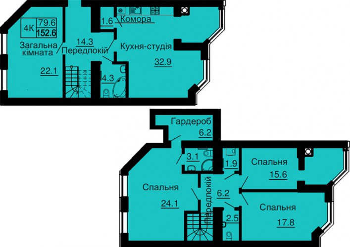 ДВОРІВНЕВА КВАРТИРА 152.60 М/КВ