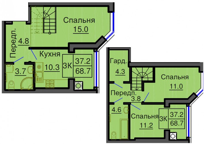ДВОРІВНЕВА КВАРТИРА 68.70 М/КВ