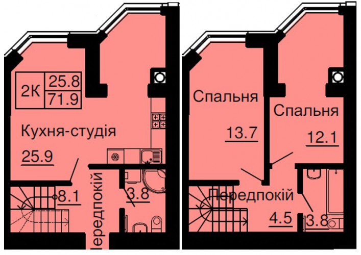 ДВОРІВНЕВА КВАРТИРА 71.90 М/КВ