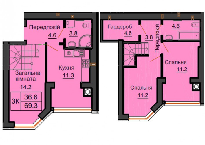 ДВОРІВНЕВА КВАРТИРА 69.30 М/КВ