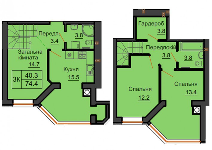 ДВОРІВНЕВА КВАРТИРА 74.40 М/КВ