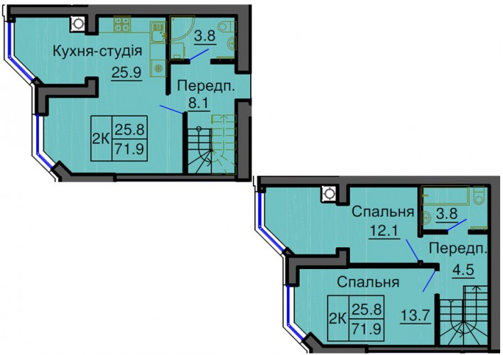 ДВОРІВНЕВА КВАРТИРА 71.90 М/КВ
