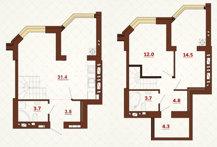 ДВОРІВНЕВА КВАРТИРА 75.70 М/КВ