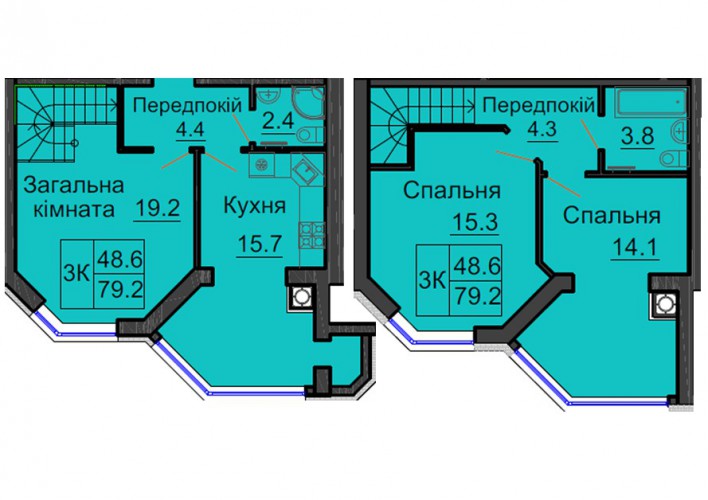 ДВОРІВНЕВА КВАРТИРА 79.20 М/КВ