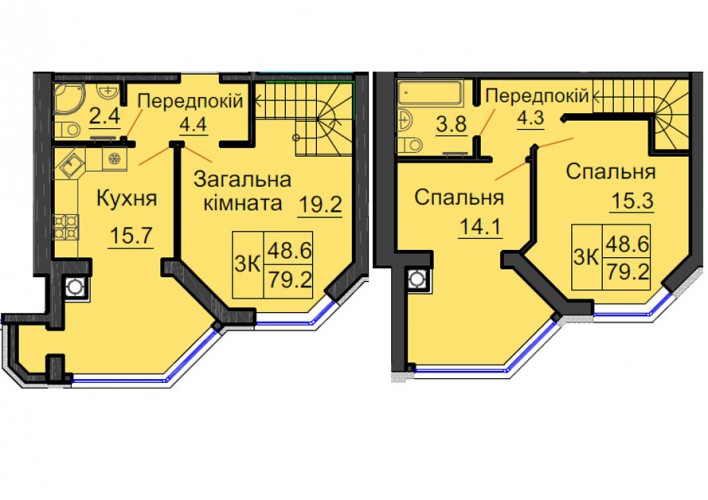 ДВОРІВНЕВА КВАРТИРА 79.20 М/КВ