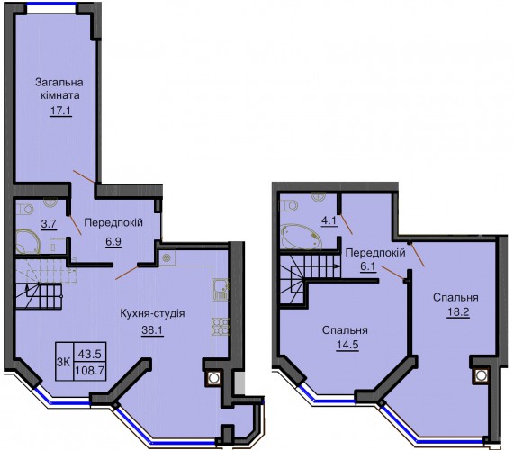 ДВОРІВНЕВА КВАРТИРА 108.70 М/КВ