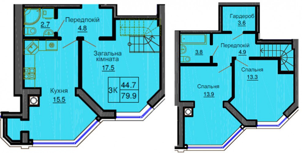 ДВОРІВНЕВА КВАРТИРА 79.90 М/КВ