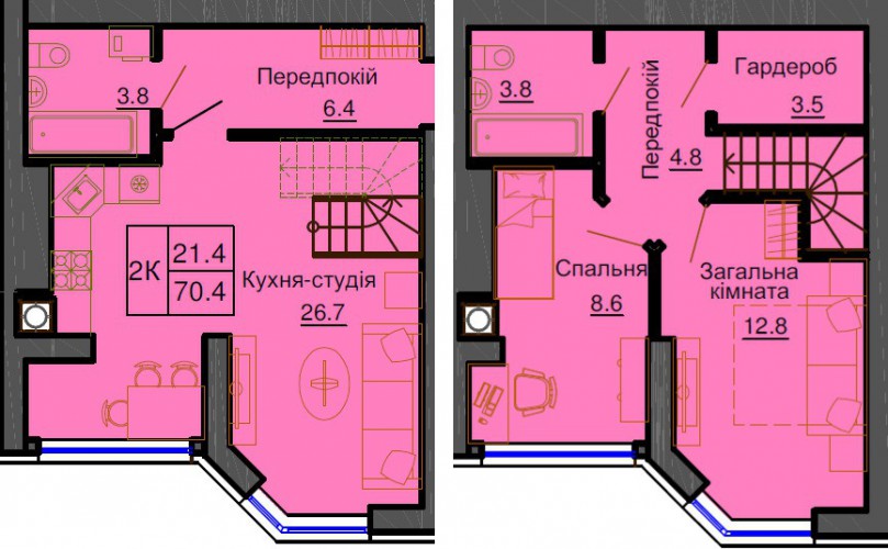 ДВОРІВНЕВА КВАРТИРА 70.40 М/КВ