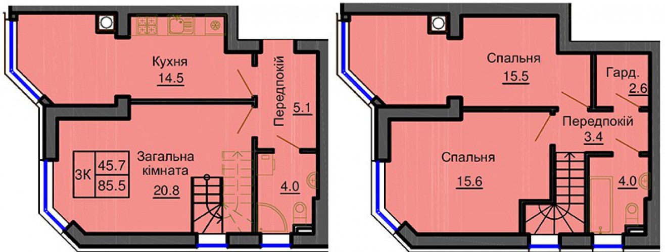 ДВОРІВНЕВА КВАРТИРА 85.50 М/КВ