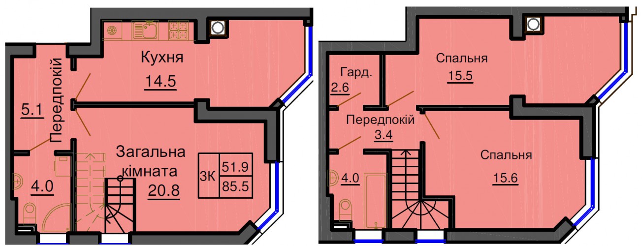 ДВОРІВНЕВА КВАРТИРА 85.50 М/КВ