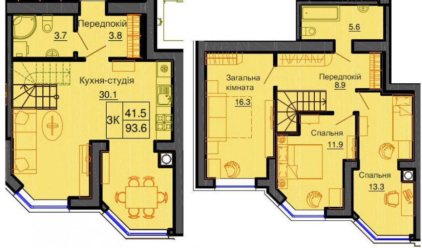 ДВОРІВНЕВА КВАРТИРА 93.60 М/КВ