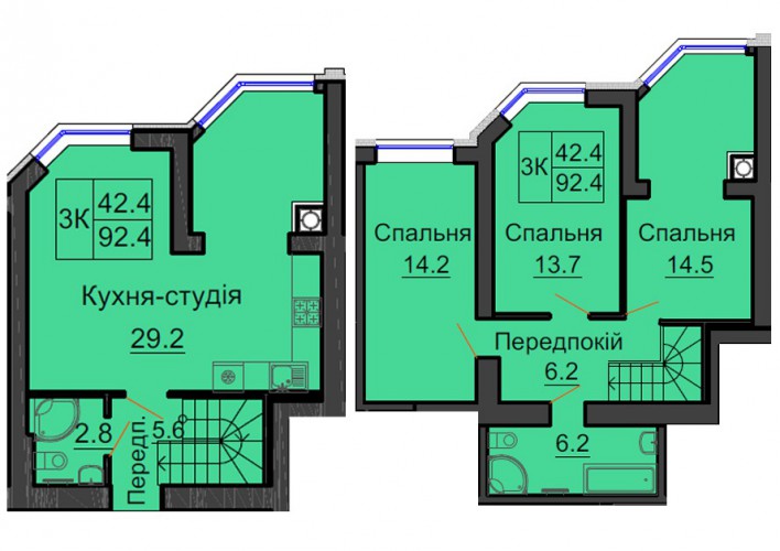ДВОРІВНЕВА КВАРТИРА 92.40 М/КВ