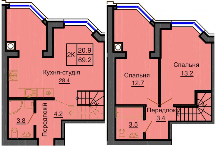 ДВОРІВНЕВА КВАРТИРА 69.20 М/КВ