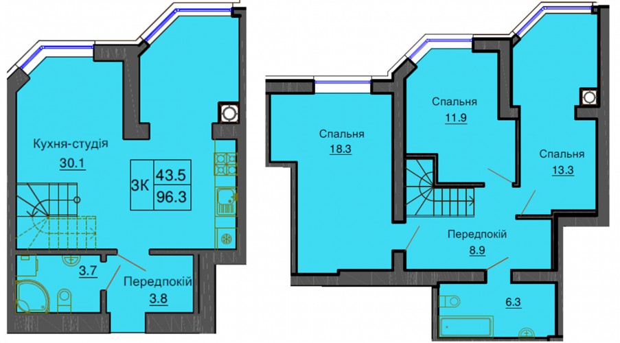 ДВОРІВНЕВА КВАРТИРА 96.30 М/КВ