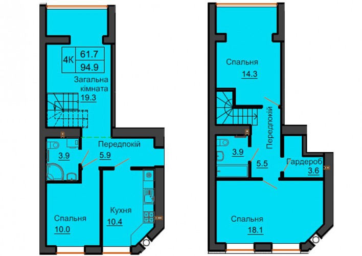 ДВОРІВНЕВА КВАРТИРА 94.90 М/КВ