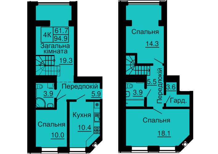 ДВОРІВНЕВА КВАРТИРА 94.90 М/КВ