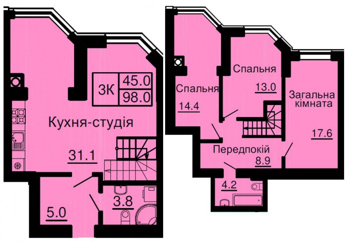 ДВОРІВНЕВА КВАРТИРА 98.00 М/КВ