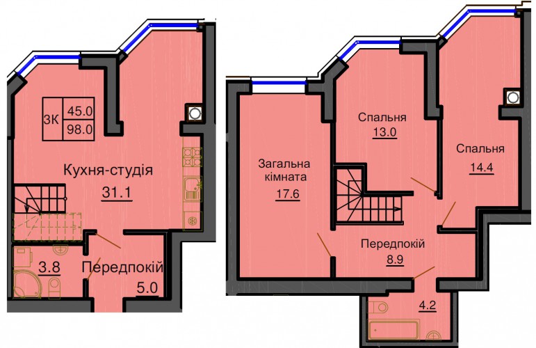 ДВОРІВНЕВА КВАРТИРА 98.00 М/КВ