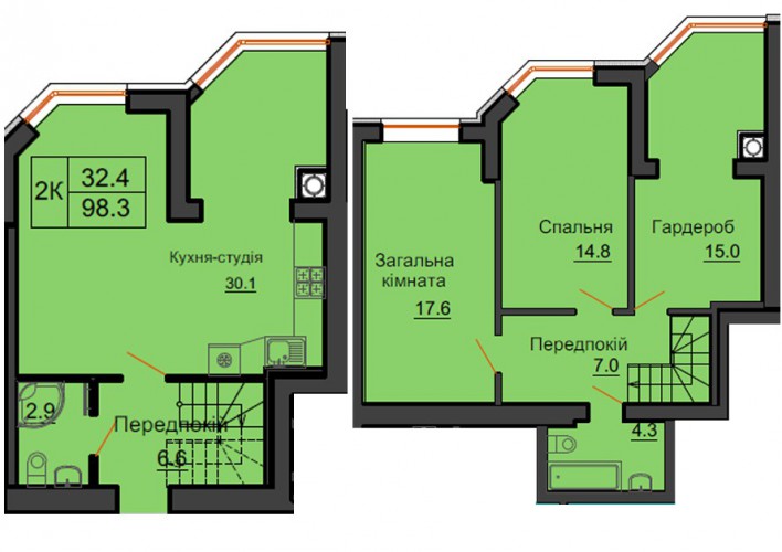 ДВОРІВНЕВА КВАРТИРА 98.30 М/КВ