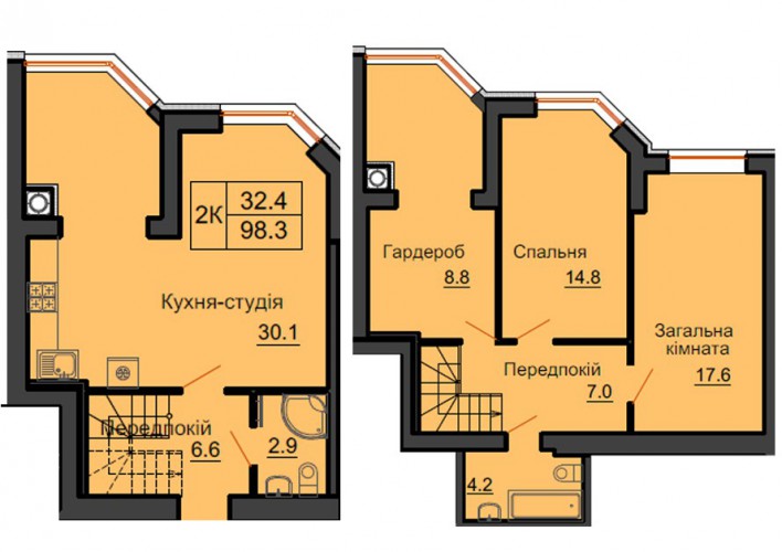 ДВОРІВНЕВА КВАРТИРА 98.30 М/КВ