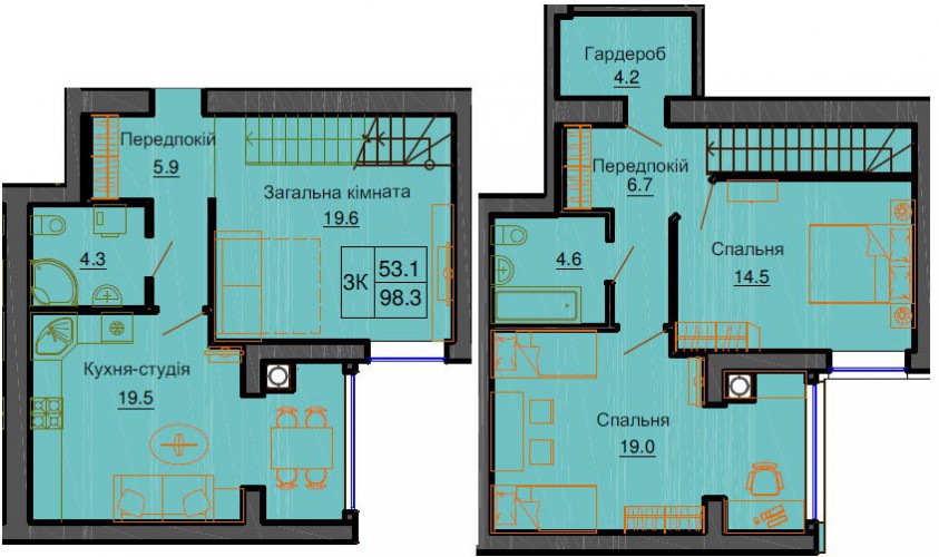 ДВОРІВНЕВА КВАРТИРА 98.30 М/КВ