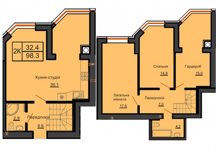 ДВОРІВНЕВА КВАРТИРА 98.30 М/КВ