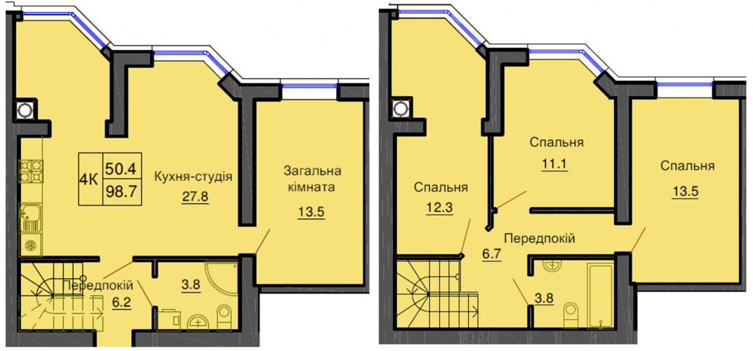 ДВОРІВНЕВА КВАРТИРА 98.70 М/КВ