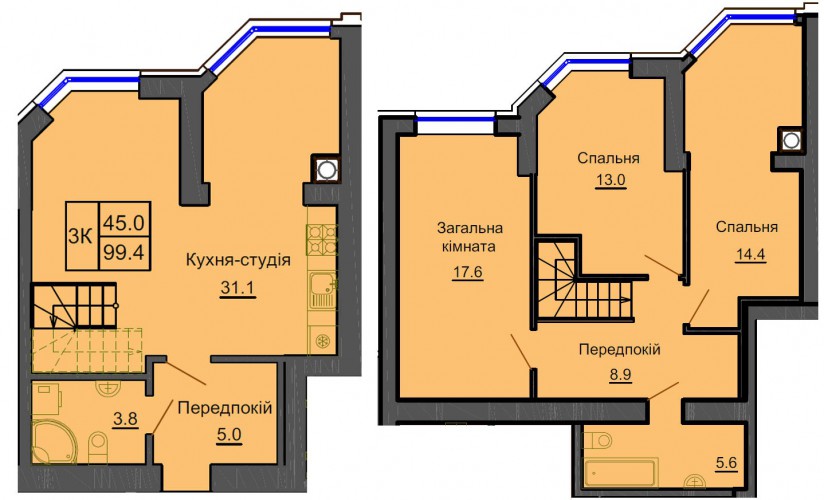 ДВОРІВНЕВА КВАРТИРА 99.40 М/КВ