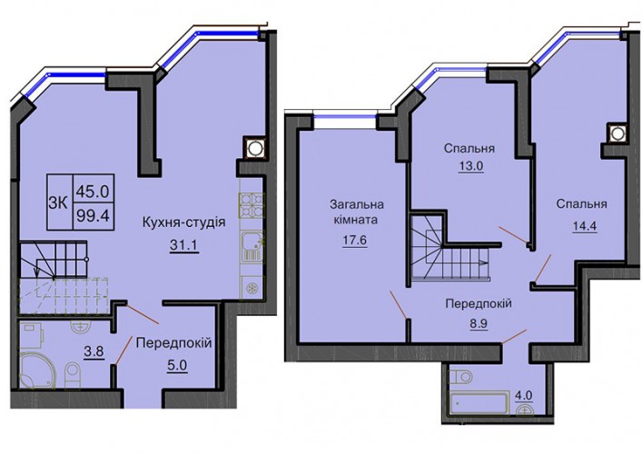 ДВОРІВНЕВА КВАРТИРА 99.40 М/КВ