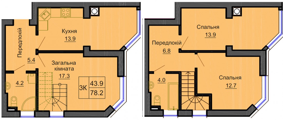 ДВУХУРОВНЕВАЯ КВАРТИРА 78.20 М/КВ