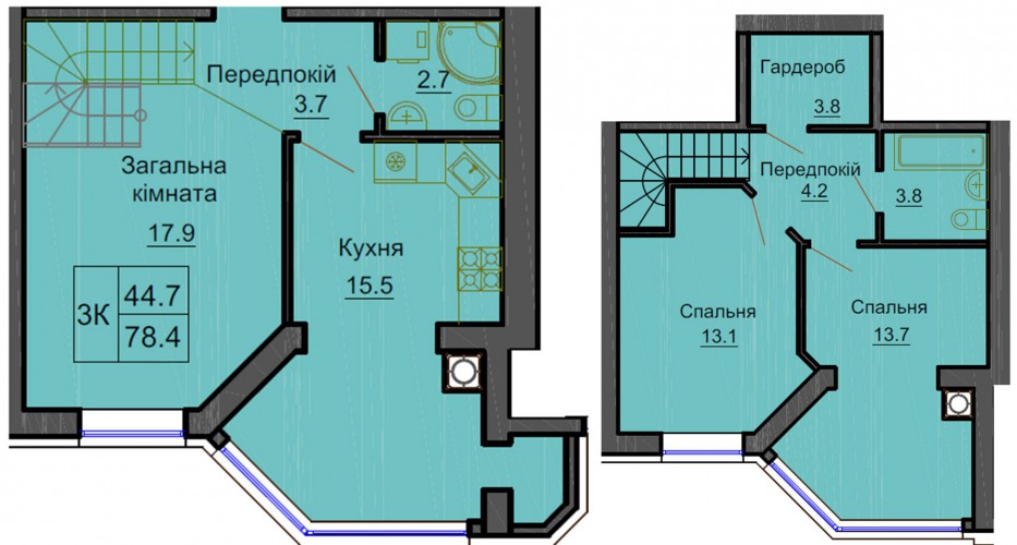 ДВУХУРОВНЕВАЯ КВАРТИРА 78.40 М/КВ